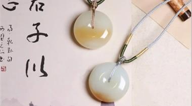糖白平安扣, 静守流年, 温润岁月, 糖色如蜜, 在洁白的玉面上缓缓流淌, 好似岁月沉淀下的甜美回忆...